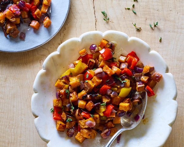There's nothing quite like the feeling of waking up to the smell of roasting onions and olive oil. The release of aroma that you'll find with this recipe for sweet potato breakfast hash will have you wanting to start every day this way! In fact, this idyllic blend of sweet potatoes, onions, red pepper, and seasoning will have you hankering for this dish beyond just breakfast. And don't worry! That works because it's great for dinner with roasted chicken or pork. It makes enough for 8 servings, so next time you host a brunch or have people over, turn the oven on, throw the ingredients on a parchment paper-lined baking sheet in the oven, and call it a day.